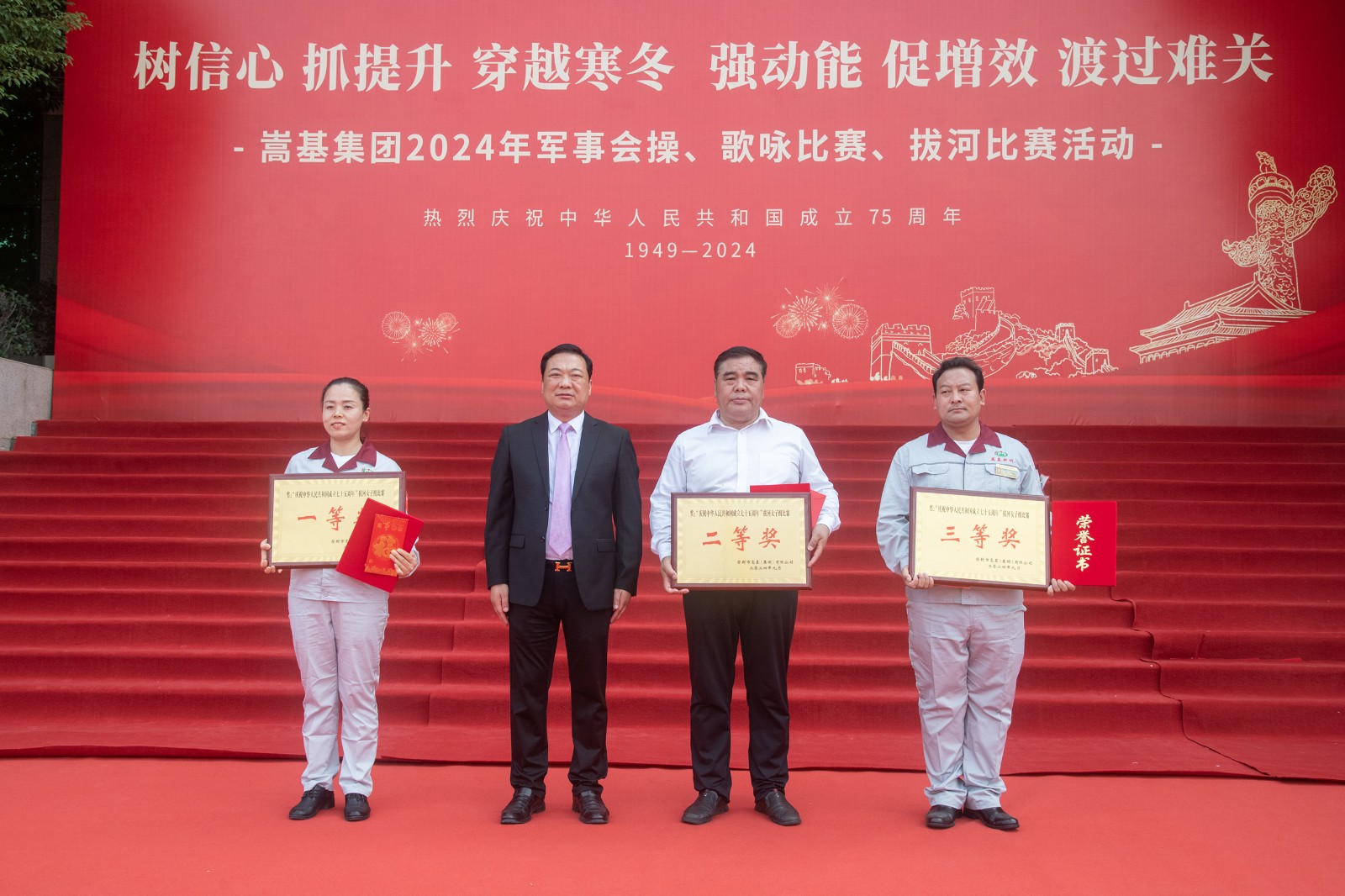 活動正式開始前,集團公司董事長屈松記發(fā)表致辭。他講到,2024年世界經(jīng)濟復雜性、不確定性上升,國內周期性、結構性矛盾突出,各種因素困擾著企業(yè)的生存與發(fā)展。集團公司高管團隊審時度勢,研判經(jīng)濟發(fā)展動態(tài),及時做出戰(zhàn)略性判斷和戰(zhàn)術調整,集團上下同欲,全面貫徹落實“一挖、兩抓、三提、四降、五減、六?!贝胧┓桨?,全面推進“三穩(wěn)四?!惫ぷ鳎嫱菩小版i定利潤,倒推成本”的嵩基版AMB管理模式,全面抓好精益管理、持續(xù)改善,深入開展效能提升年活動,取得了一定的成效,實現(xiàn)了企業(yè)穩(wěn)定持續(xù)發(fā)展。他還對參賽單位和隊員提出了希望和祝福。隨后,主持人宣布“慶祝中華人民共和國成立75周年”軍事會操、歌詠比賽、拔河比賽系列文體活動開始。