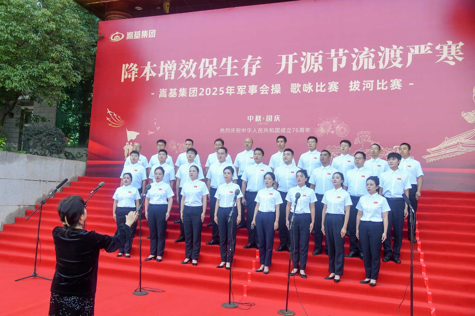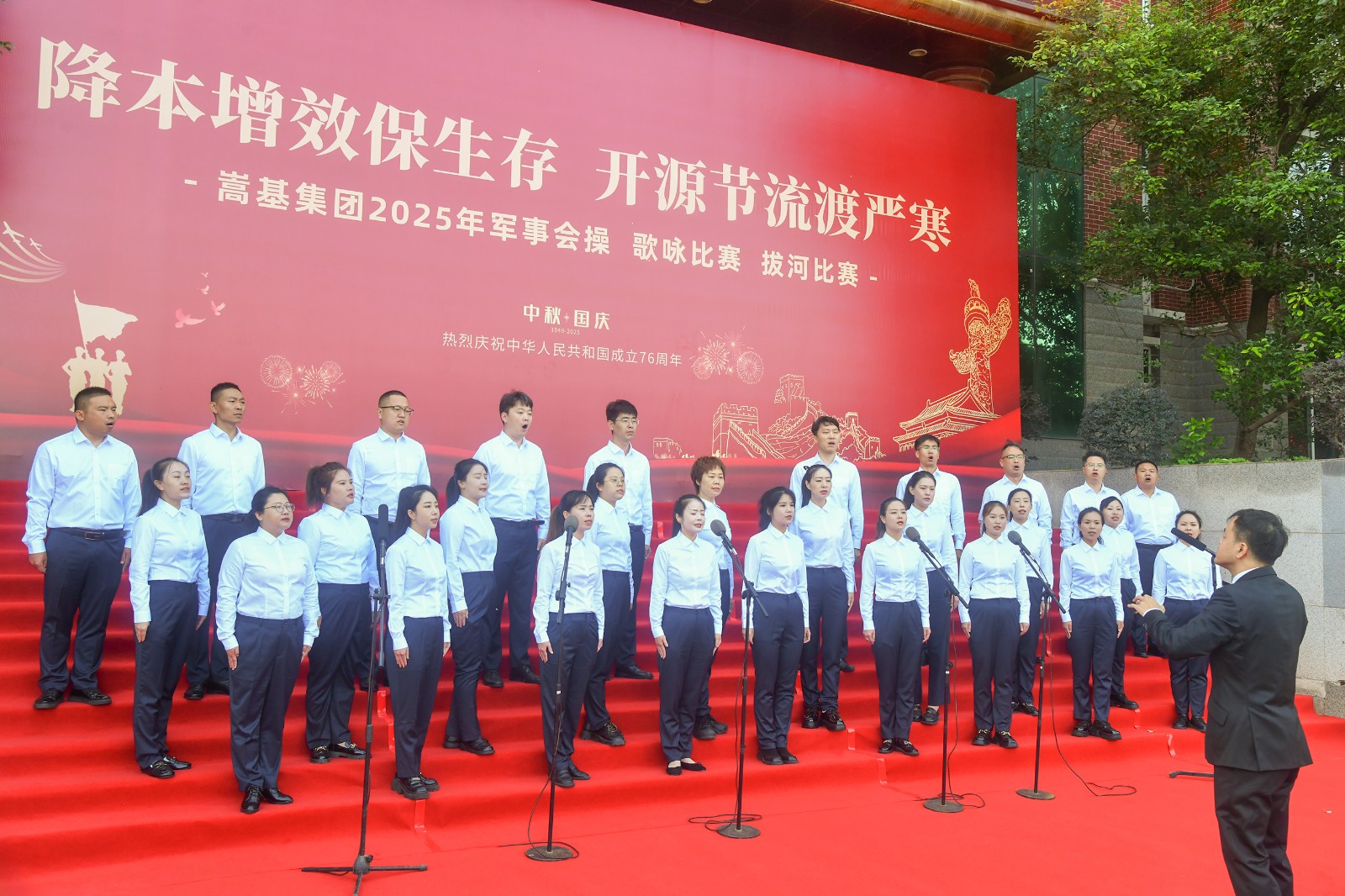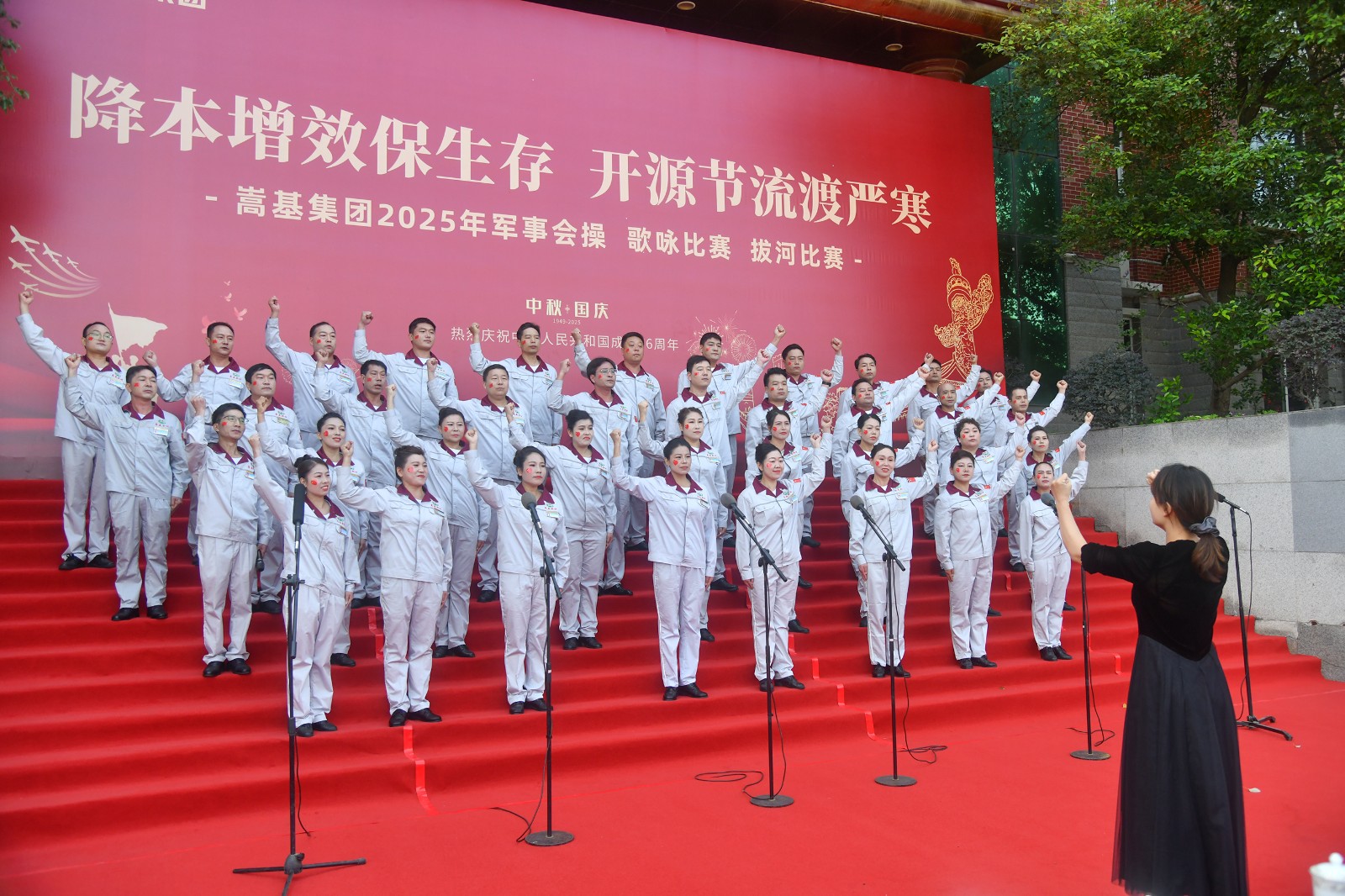 本次活動依次進行了歌詠比賽、軍事會操和拔河比賽三項賽事。歌詠比賽中,各代表隊精神飽滿,《保衛(wèi)黃河》《強軍有我》《愛永在》等經(jīng)典曲目接連唱響,歌聲嘹亮,情感真摯,或氣勢磅礴,或深情婉轉(zhuǎn),充分表達了嵩基員工對祖國的深厚情感與美好祝?!,F(xiàn)場氣氛熱烈,掌聲此起彼伏。經(jīng)專業(yè)評委現(xiàn)場打分,嵩基水泥代表隊榮獲冠軍,中岳電力代表隊獲得亞軍,嵩基新材代表隊獲得季軍。