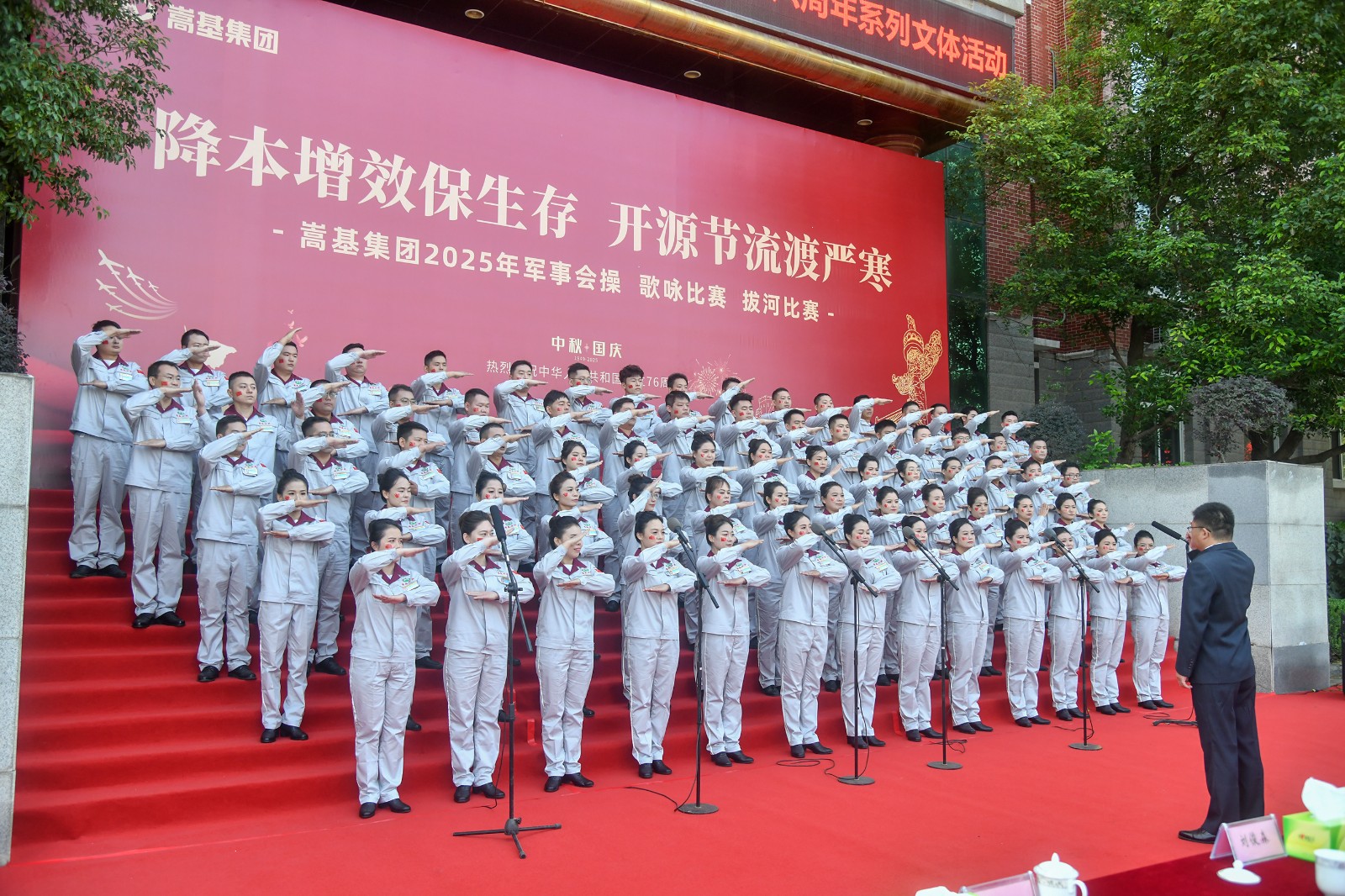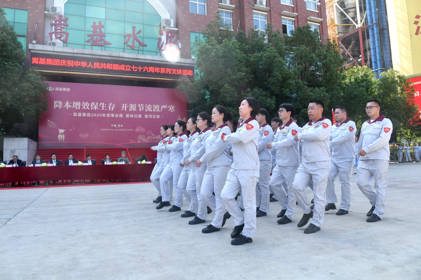 9月30日上午,嵩基集團在嵩基水泥迎賓廣場隆重舉辦以“降本增效保生存 開源節(jié)流渡嚴(yán)寒” 為主題的慶祝中華人民共和國成立76周年軍事會操、歌詠比賽及拔河比賽系列文體活動。此次活動旨在喜迎新中國76周年華誕,凝聚奮進力量,展現(xiàn)企業(yè)風(fēng)貌。集團公司董事長屈松記、總經(jīng)理李天義等領(lǐng)導(dǎo)出席活動,各單位代表隊及觀摩人員510余人參加。